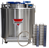 The CryoSafe™ Sentry Plus auto fill Package System can easily be set to provide safe storage of LN2 in vapor or liquid phase. Sample racks are directly accessible without the use of an internal carousel to meet capacity needs up to 38,350 each 2 ml vials.